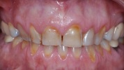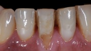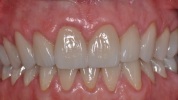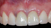 Cirugía para eliminar pigmentación en la encía de los incisivos superiores y elaboración de coronas de disilicato de litio.